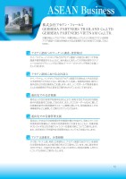 株式会社アセアン・フォーカスGERBERA PARTNERS THAILAND Co.,LTD. GERBERA PARTNERS VIETNAM Co.,LTD.労働市場としてだけでなく、消費市場としても大いに期待されている東南アジア諸国への進出を検討される企業様を万全の体制でご支援してまいります。アセアン諸国へのマーケット調査・投資検討タイ、ベトナム、インドネシアなどのアセアン諸国への進出にあたって市場調査や業界調査を行うとともに、海外進出にあたっての予算計画やスケジュールなどのプランニング及び現地パートナーのマッチング等をご支援いたしております。アセアン諸国における会社設立タイ、ベトナム、インドネシアなどのアセアン諸国での現地法人や支店の設立手続きを代行するとともに、物件探しや人材探し、税務局の登記、銀行口座作成などの周辺業務もご支援します。また、シンガポールや香港を拠点とした地域統括の手法に関するご案内もさせていただいております。進出先での会計税務進出先での労務管理支援現地法人の会計処理や税務申告はもとより、現地子会社や支店の内部統制や内部監査をご支援しております。また、クロスボーダーM&Aに際しての調査対象先の財務調査やスキーム構築に関しても、現地監査法人や法律事務所などと連携してご案内させていただきます。現地法人や支店での就業規則や労働契約書の作成から、現地スタッフの評価制度の整備など、現地の労務管理をご支援するとともに、労働争議やストライキなどの労務クライシスへの事前対策についてご案内します。また、赴任者のビザ申請や赴任規程作成についてもご支援いたします。アジア言語教室、企業研修タイ語、ベトナム語、英語、広東語など、アセアン諸国で話されている言語の学習を教室または企業研修の形式でご案内しています。単に語学を学ぶだけでなく、出張や赴任に際して知っておきたい現地の習慣、しきたりについても同時にご案内いたします。ASEAN Business13
